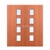The Bifrost Cherry Veneer 28G Glazed Pair FD30 Fire Door combines elegant design with practical performance, making it an excellent choice for both modern and traditional interiors. This pair of 30-minute fire-rated doors features 400mm x 200mm glazed panels, lipped on all four edges for enhanced durability and a polished finish. All glazing options are fully fire-rated, including Clear (C730) Pyroglass, Georgian Wired Polished Plate (GWPP) glass, or Frosted glass created by sandblasting one face of the C730 glass. To match a variety of interior styles, the doors can be supplied in paint grade, primed, painted (any RAL colour), or laminate finishes, offering both flexibility and aesthetic appeal. The set comes ready with a square meeting stile and two combined heat & smoke seals for the centre, included in the price. Handles and additional ironmongery are not included. Each veneered strebord-core door is book-matched and made to order, ensuring superior craftsmanship and consistency. Certified to FD30 standards, these doors provide reliable fire protection while highlighting the natural beauty of cherry veneer. If you require this model as part of a matching pair, please explore our bifrost doors collection.