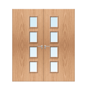The Bifrost Internal Ash Veneer 28G Glazed Pair FD30 Fire Doors combine sleek design with dependable fire protection. This 30-minute fire-rated pair features 400mm x 200mm glazed panels, lipped on all four edges for enhanced durability and a premium finish. Fully fire-rated glazing options include Clear (C730) Pyroglass, Georgian Wired Polished Plate (GWPP), and Frosted glass. Available in paint grade, primed, painted (RAL colour), or laminated finishes, these doors suit both residential and commercial interiors. Supplied with a square meeting stile and two combined heat & smoke seals (included in price). (Handles and additional ironmongery not included.) All ash veneer stirboard-core doors are book-matched and made to order, certified as a pair of FD30 fire doors. For matching options, explore our bifrost fire door collection.